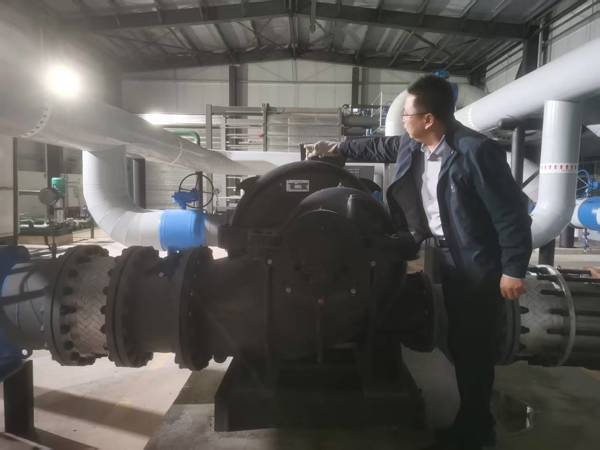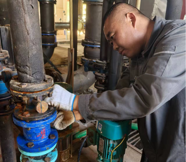 熱力公司工作人員更換康盛E區(qū)補(bǔ)水泵止回閥